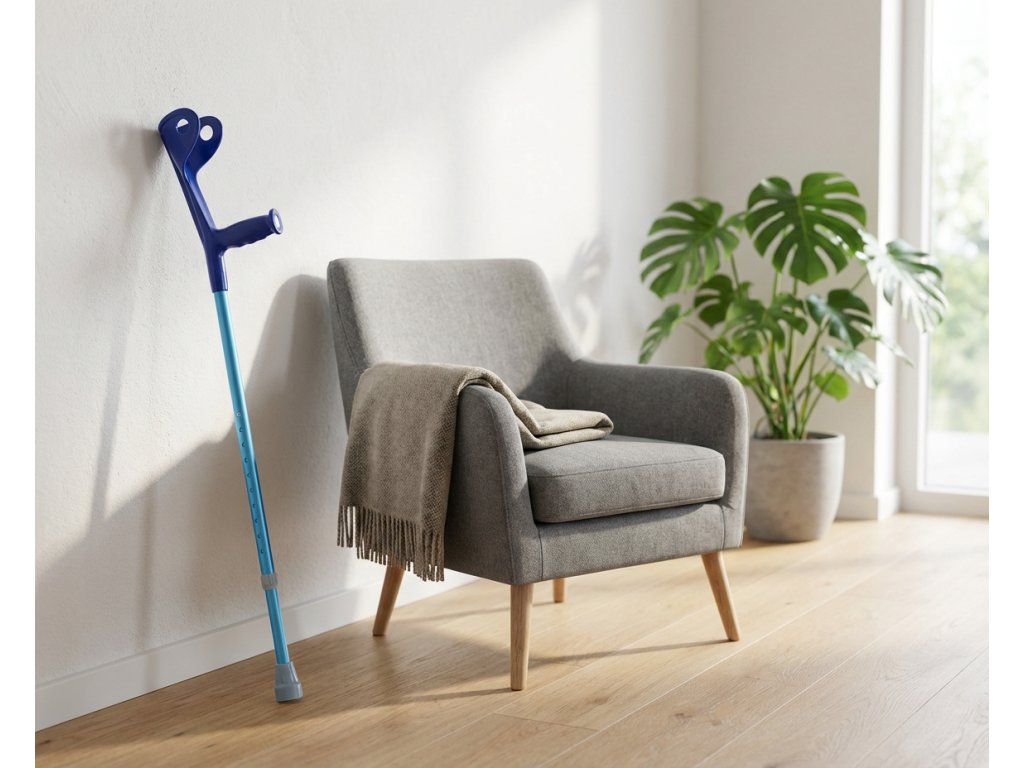 Besco Francouzská berle v modré barvě. Výška od držadla k zemi 80 - 122 cm, nosnost 100 kg, hmotnost berle 0,54 kg.