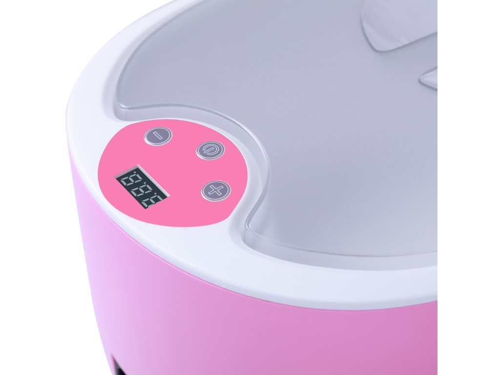 Parafínová vanička s objemem 5000 ml v elegantním růžovém provedení je ideální pro domácí použití i menší kosmetické nebo rehabilitační provozy.
