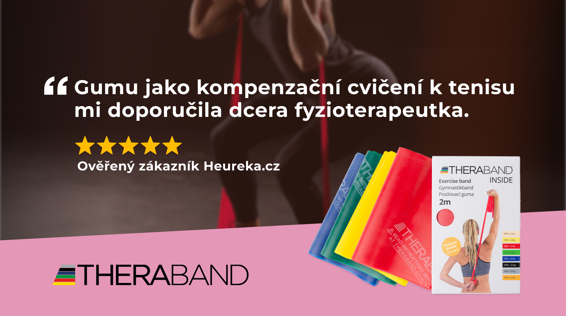 Posilovací gumy Thera-Band poskytují všestranné a jednoduché řešení pro Vaší rehabilitaci, cvičení doma nebo silový trénink. Cvičení s gumou Thera-Band zlepšuje držení těla, rovnováhu, posiluje svaly, minimalizuje tlak na klouby a snižuje riziko zranění. Posilovací gumy Thera-Band umožňují jednoduchým způsobem posilovat oslabené svaly, uvolňovat kontraktury opačně posilujících svalů - antagonistů. Posilovací gumy Thera-Band jsou vhodné ke cvičení v každodenním životě a pomáhají tak předcházet jednostranným pohybům. Jedná se o vysoce kvalitní produkt prověřený mnoha léty používání, který je vhodný pro všechny věkové skupiny díky možnosti volby zátěže/obtížnosti. Posilovací guma Thera-Band je čistě přírodní produkt obsahující přírodní latex.