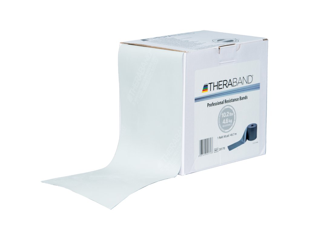 Ekonomicky výhodné balení v roli o délce 45,5 m a šířce 12,7 cm. Tento produkt je vhodný do fitness center, rehabilitací a všech větších provozoven, kde je výhodné materiál stříhat dle specifických požadavků na terapii či trénink. Posilovací guma Thera-Band ve stříbrném provedení, jde tedy o sedmý stupeň obtížnosti na škále barev posilovacích gum Thera-Band super silná. Tuto sílu odporu využívají při tréninku již profesionální sportovci.
