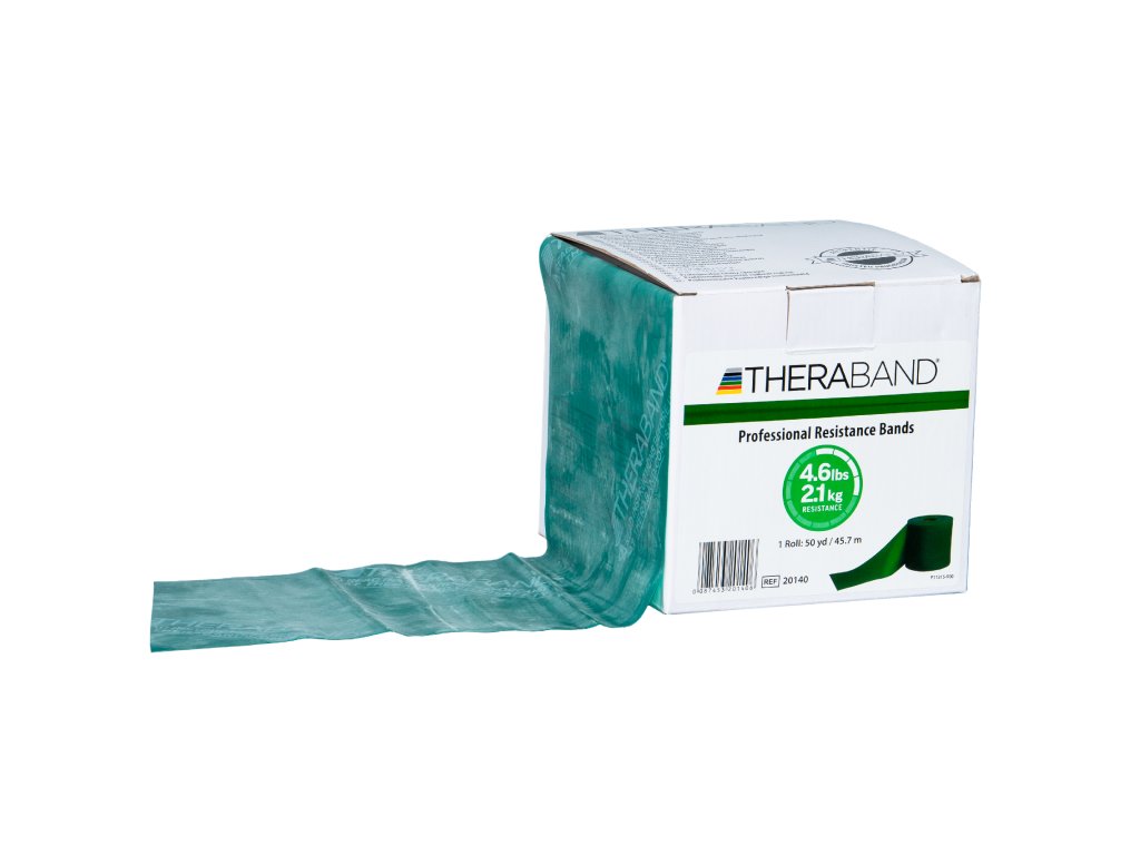 Ekonomicky výhodné balení v roli o délce 45,5 m a šířce 12,7 cm. Tento produkt je vhodný do fitness center, rehabilitací a všech větších provozoven, kde je výhodné materiál stříhat dle specifických požadavků na terapii či trénink. Posilovací guma Thera-Band v roli v zeleném provedení, jde tedy o čtvrtý stupeň obtížnosti na škále barev posilovacích gum Thera-Band s označením silná.