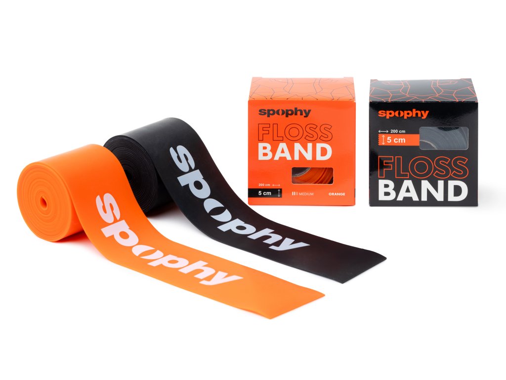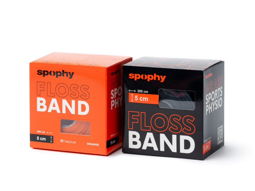 Spophy Flossband je dostupný ve dvou barevných variantách a je jen na terapeutovi nebo sportovci, aby zvolili vhodný Flossband v závislosti na ošetřované lokalitě a způsobu použití. Oranžový Spophy Flossband je elastičtější a poskytuje menší míru komprese. Je vhodný pro prvotní aplikaci u všech osob, které ještě neměli možnost se seznámit s metodou "tissue flossing" a také k aplikaci na menší klouby a svalové partie. Černý Spophy Flossband je vhodný pro použití v oblasti větších kloubů a objemnějších svalových skupin. Spophy Flossband je dostupný v šířce 5 cm a délce 2 m. Objevte kouzlo metody "tissue flossing", která efektivně zapadá do terapeutického konceptu sportovních terapeutů.